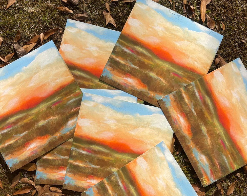 Natalie Neal is an Atlanta-born artist living in the Virginia-Highland neighborhood. After graduating from the University of Georgia and spending a few years in the fashion world, she shifted her focus back to what she’s loved since day one—painting. She works mainly in oil on canvas, creating layered pieces that play with texture, depth, and color. Her work reflects her long-standing love of creativity and the joy she finds in exploring new ideas on the canvas. Natalie plans to release a new series every few months, which will include original oil on canvas and prints.